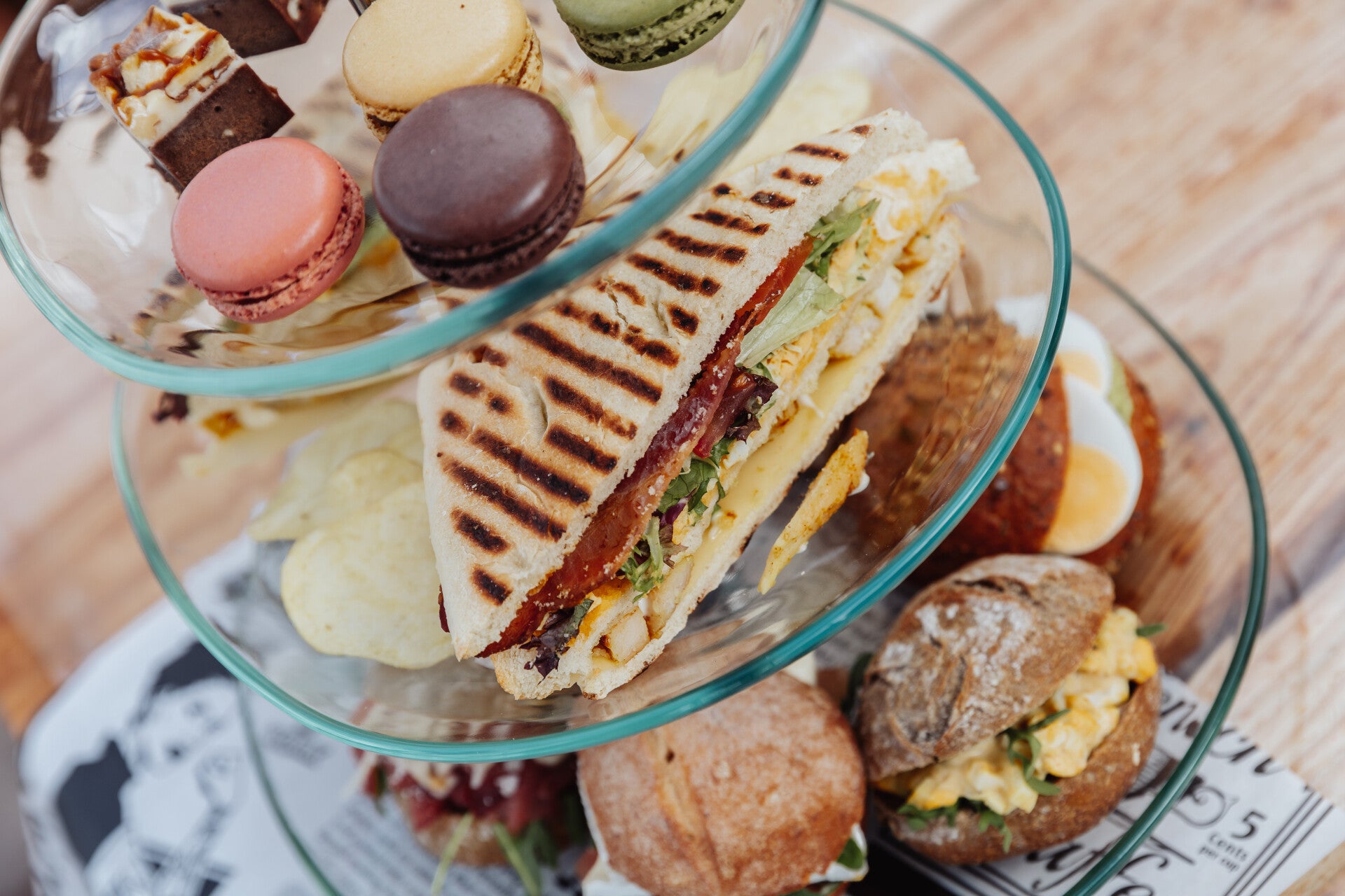 We hebben samen met Michael een lekkere 'uit het vuistje' lunch samengesteld waarbij je de keuze hebt uit vlees, vis of vegetarisch. Geef dit aan bij je reservering. Bij zowel de vlees- als de vis variant krijg je twee vers gebakken artisan bollen met een mix van luxe beleg (carpaccio, brie met serranoham, gerookte zalm en oude kaas) én een overheerlijke clubsandwich. Kies je voor de vega optie dan krijg je drie vers gebakken artisan bollen met bijvoorbeeld avocadosalade en ei, mozzarella met tomaat en pesto én een heerlijke huisgemaakte eiersalade. Alsof dit allemaal nog niet genoeg is, toppen we de lunch af met een zoete lekkernij, bijvoorbeeld macarons of brownies. Een glaasje verse jus d'orange vinden we er ook bij horen! Daarnaast zijn koffie, thee en water/limonade onbeperkt inbegrepen. Dieetwensen? Geef dit vooraf aan bij het reserveren, waar mogelijk proberen we hier natuurlijk rekening mee te houden (o.a. gluten- en lactosevrije opties).