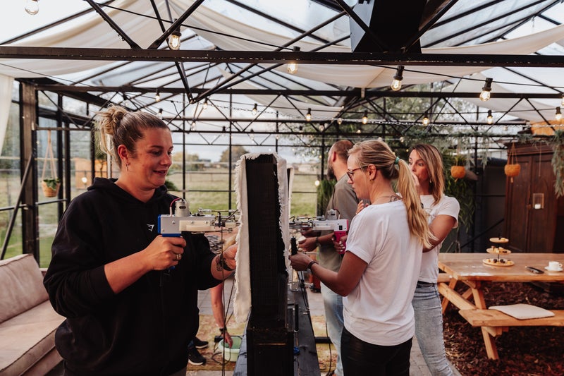 Tufting is dus helemaal hip, hot en happening en waarom? Het antwoord ligt in de combinatie van eenvoud en creativiteit. En combineer je dit dan óók nog met het leukste fluffy tuffy gezelschap van Nieuwerkerk aan den IJssel dan heb je de meest geweldige workshop van het jaar te pakken! Toch Ted?! Ja écht!